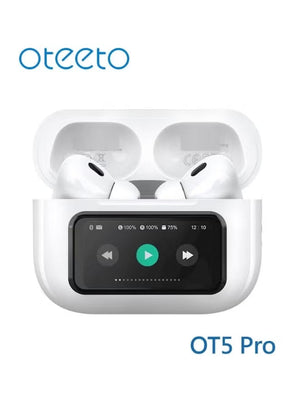 The OT5 Pro Earbuds are wireless earbuds equipped with a smart display on the charging case, providing an intuitive interface for managing audio playback. Designed with noise cancellation and Hi-Fi sound quality, they aim to deliver a high-quality listening experience. The earbuds offer touch-sensitive controls and advanced Bluetooth 5.3 for stable connectivity. The case itself is also part of the experience, featuring a display for monitoring battery levels and controlling playback.