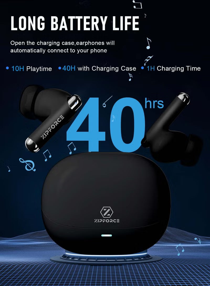 ZIPFORCE Luna Plus is New 2024 standard configuration in-ear headphones True wireless in-ear Bluetooth headset – Extremely fast and stable connection – Total working hour more than 40 hours - Perfect for iPhone and compatible with Android phones