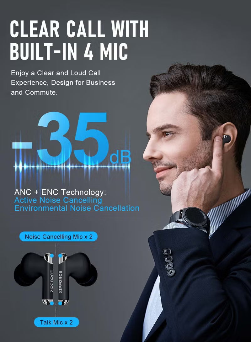 ZIPFORCE True Wireless Earbuds, Fully In-Ear Bluetooth 5.3 Headphones 4-Mics ANC + ENC Clear Call, Bluetooth Earbuds Touch Control 40 Playtime, IPX6 Waterproof TWS, Light-Weight Earphones